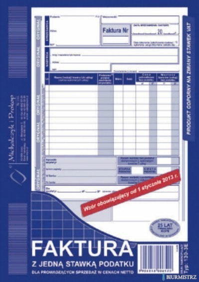 130-3U/E Faktura VAT A5z jedn.st pod.(pion)MICHALCZYK I PROKOP