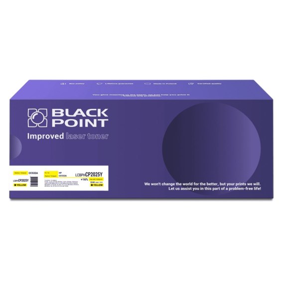 Toner laserowy Black Point LCBPHCP2025Y. Zastepuje HP / Canon CC532A / CRG-718Y. Kolor: yellow. Wydajnosc: 3240 str. (wiecej o 440 str. od OEM - ISO 19752). Kompatybilny z HP Color LaserJet: CM2320fxi, CM2320nf, CP2025n, CP2025dn, CP2025; Canon i-SENSYS: LBP7200Cdn, MF8330Cdn, MF8350Cdn, MF8380CDW, MF8360CDN, MF8340CDN, LBP7660CDN, LBP7680CX, LBP7210Cdn, MF8540Cdn, MF8550Cdn, MF8580Cdw, Color MF729Cx, MF724Cdw, MF728Cdw