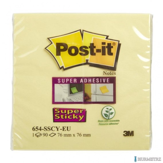 Bloczek 3M POST-IT 76x76mm żółty 90k Super Sticky (654)70005197911