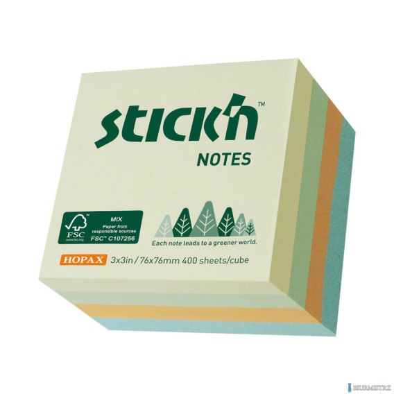 Bloczek kostka 76X76mm, pastel żół/ziel/pom/nieb, 400 kartek 21890 mix kolorów