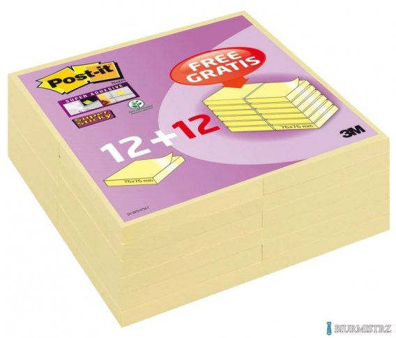 Bloczek samoprzylepny POST-IT_ Super Sticky (654SSCYP12+12), 76x76mm, 12+12x90 kart., żółty, 3M-UU001601150