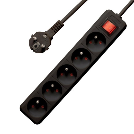 Przedłużacz Listwa Zasilająca Antyprzepięciowa 5 gniazd 1,5 m czarna 16A