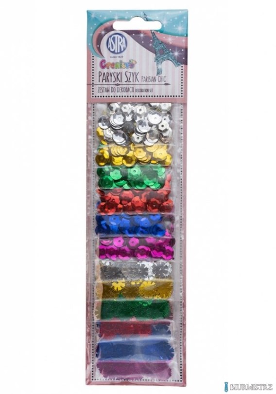 Cekiny zestaw Paryski Szyk mix 12 kolorów x 2g ASTRA, 335120002