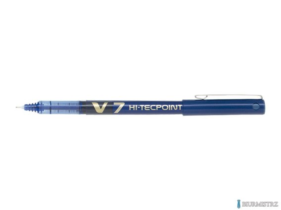 Cienkopis kulkowy z obudową w kolorze tuszu i okienkiem pozwalającym na kontrolę jego zużycia. Posiada bezpieczną wentylową skuwkę z metalowym klipem. Możliwość pisania po każdym rodzaju papieru. Polecane dla osób leworęcznych. Cienkopis V7 posiada igłową końcówkę, dzięki której linia pisania jest bardzo precyzyjna. Grubości linii pisania: 0,40 mm, długości linii pisania: 1400 m. Występuje w kolorach czarny, czerwony, niebieski, zielony._V7 produkowany jest w oparciu o technologię V-System, która obejmuje trzy filary technologiczne:_INK WRITING - Kiedy podczas pisania, ze zbiornika wydostaje się nadmiar atramentu, jest on przechowywany w specjalnie skonstruowanej końcówce z wbudowanymi mikro skrzydełkami. Dzięki temu ilość atramentu przepływającego do końcówki jest zawsze stała. Grubość pisanej linii nie zmienia się, pisze do ostatniej kropli._Hi-Tecpoint _ to niepowtarzalna końcówka wykonana ze stali nierdzewnej z zastosowaniem 3 symetrycznych wgłębień do podtrzymywania i wspierania kulki. Dzięki zastosowaniu Hi-Tecpoint, kulka podczas pisania obraca się bardzo lekko i płynnie._ATT System _ czyli system _skuwka w skuwce_. Wewnątrz zewnętrznej skuwki umieszczona jest mniejsza, która szczelnie zabezpiecza końcówkę piszącą. Dodatkowo w razie połknięcia umożliwia oddychanie._