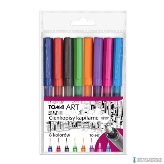 Cienkopisy kapilarne, końcówka 0,5mm, komplet 8 kolorów TO-347-8 Toma