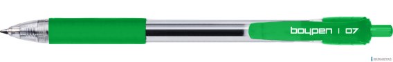 Długopis BP-EKO BOY-PEN_- automatyczny długopis na wkłady wymienne F-120 z końcówką zapewniającą lekkość i płynność pisania. Tusz wodootporny i nieblaknący. Przeźroczysta obudowa pozwala na kontrolę ilości tuszu, zaopatrzona w gumowy uchwyt i klips - barwione w kolorze tuszu. Kolory wkładów: czarny, czerwony, niebieski, zielony.