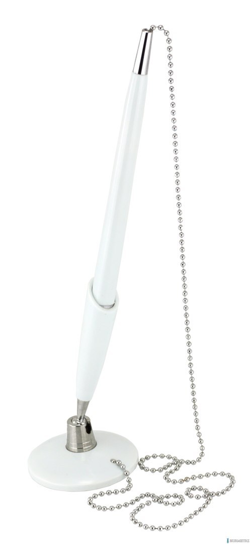 Długopis plastikowy z podstawką i metalowym łańcuszkiem biały 0,7mm KAMPALA A01.2198.00