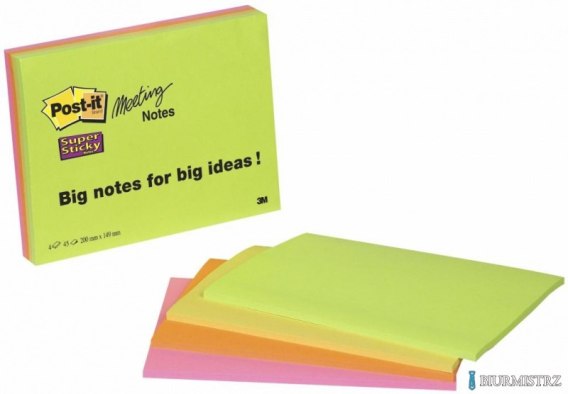 Duże karteczki samoprzy lepne Post_it Super Sticky, mix kolorów, 203 _ 152 mm, 45 ark./bloczek, 4 bloczki 7100400016