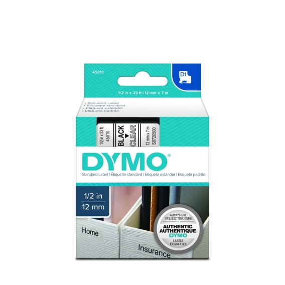 Dymo taśma do drukarek etykiet, D1 45010 | 12mm x 7m | czarny / przezroczysty