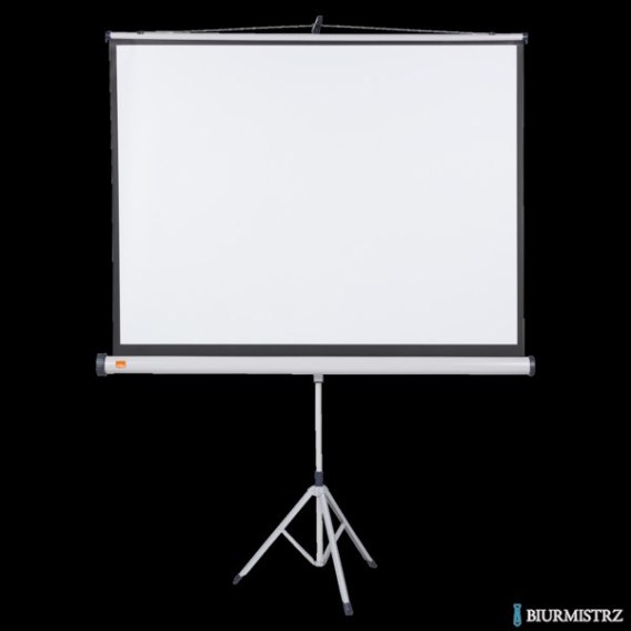 Ekran projekcyjny na trójnogu NOBO Standard_- format 4:3_- powierzchnia biała matowa z czarnym ramkami wokół ekranu zwiększającymi kontrast oglądanego obrazu_- regulacja wysokości ekranu oraz dolnej krawędzi_- składany trójnóg z gumowymi końcówkami nóżek_- poprzeczne ramię daje możliwość odchylenia ekranu od pionu w celu wyeliminowania efektu Keystone_- wbudowany napinacz pomaga w uzyskaniu idealnie gładkiej powierzchni_- solidna metalowa konstrukcja koloru szarego z granatowymi plastikowymi elementami_- jednostka sprzedaży 1 sztuka