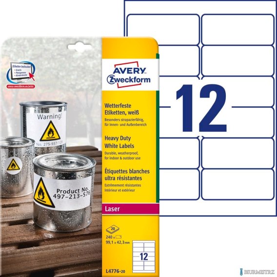 Etykiety Heavy Duty L4776-20 99,1 x 42,3 20 ark. Trwałe, białe, poliestrowe, Avery Zweckform