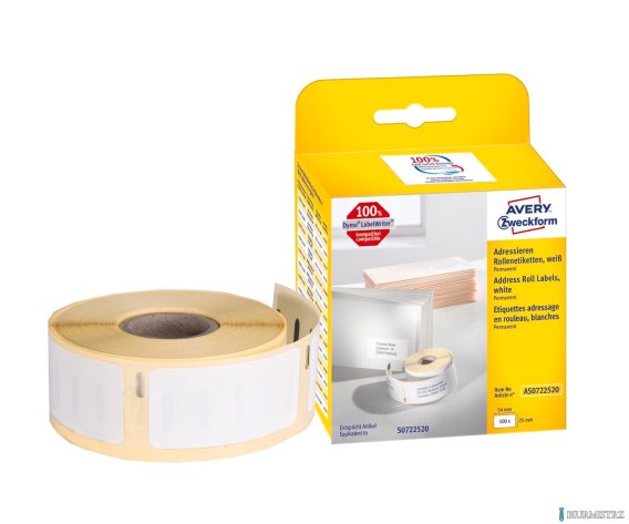 Etykiety adresowe AS0722520 25x54 500 et. w rolce do termodruku, białe, Avery Zweckform