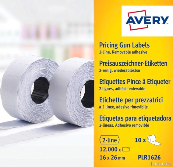 Etykiety cenowe do metkownic PLR1626 16x26 rolka do metkownicy dwurzędowej Avery Zweckform, usuwalne, 1200 etyk./rolka, 10 rolek