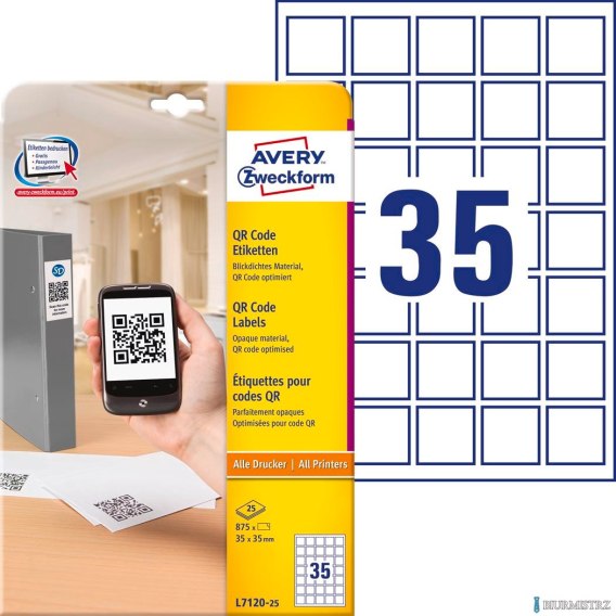Etykiety do kodów QR L7120-25 35 x 35 25 ark. Avery Zweckform