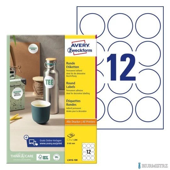 Etykiety AVERY ZWECKFORM o nietypowych kształtach A4, 100 ark./op., _60 mm, białe