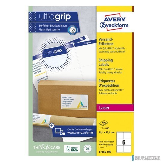 Technologia druku:•LASER: Tak•LASER COLOR: TakCechy produktu:•Rozmiar etykiety (mm): 99,1 x 93,1•Etykiet / arkusz: 6•Arkuszy/ opakowanie: 100•Etykiet/ opakowanie: 600•Kolor: białe•Format: A4•Rzędów/ arkusz: 2x3•Certyfikaty: FSC