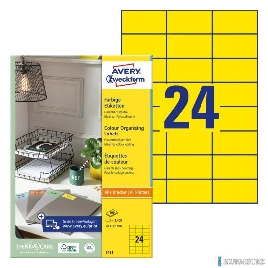 Etykiety AVERY ZWECKFORM trwałe kolorowe A4, 100 ark./op., 70 x 37 mm, żółte