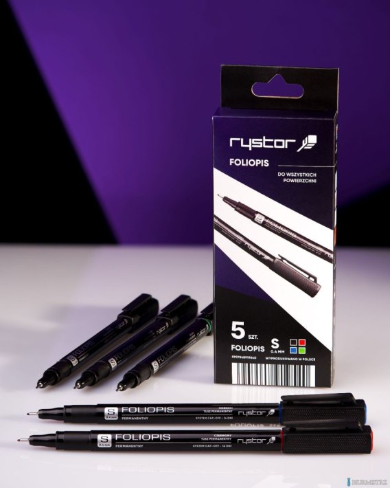Foliopis Permanentny Rystor___ wodoodporny___ idealny do pisania na prawie wszystkich powierzchniach_gładkich (szkło, plastik, metal, porcelana, folia, płyty __CD/DVD itp.)___ zaopatrzony w szybkoschnący, nie rozmazujący się tusz,_odporny na działanie promieni słonecznych___ charakteryzuje się dużą intensywnością barw_i wyrazistością konturów___ foliopis może być pozostawiony bez zatyczki przez wiele_dni _ nie zaschnie___ korek w nasadce i obudowie określa kolor tuszu___ w każdej grubości dostępny w zestawach 5 szt. (4 kolory:_czarny, czerwony, niebieski, zielony) + dodatkowy czarny_GRATIS___ jednostka sprzedaży 1 sztuka lub 1 komplet