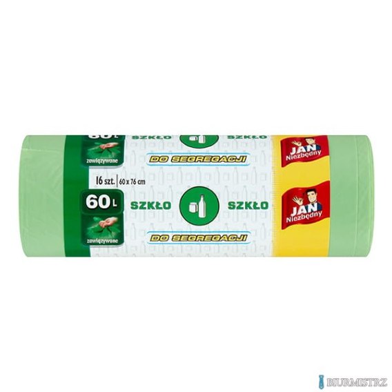 JAN NIEZBĘDNY Worki LD Eko zielone 60l 16 szt. szkło z uszami zawiązywane do segregacji 40777