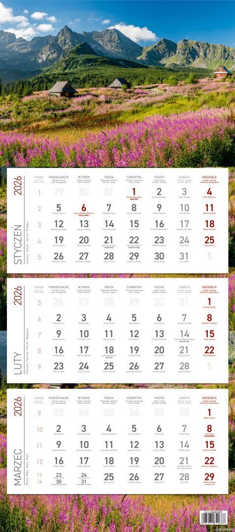 Kalendarz trójdzielny ekonomiczny KS045B GÓRY 2026 WOKÓŁ NAS