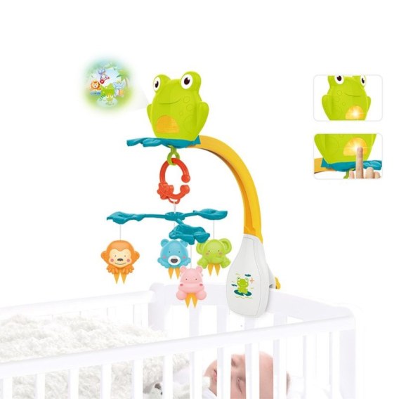 • Rozwija zmysły - kolorowe zawieszki i świetlne projekcje stymulują wzrok i słuch.