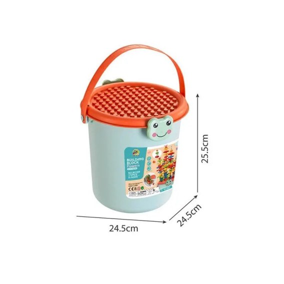 172 elementy klocków do budowy kwiatów (różne kolory i kształty), Wiaderko z pokrywką i uchwytem do przechowywania