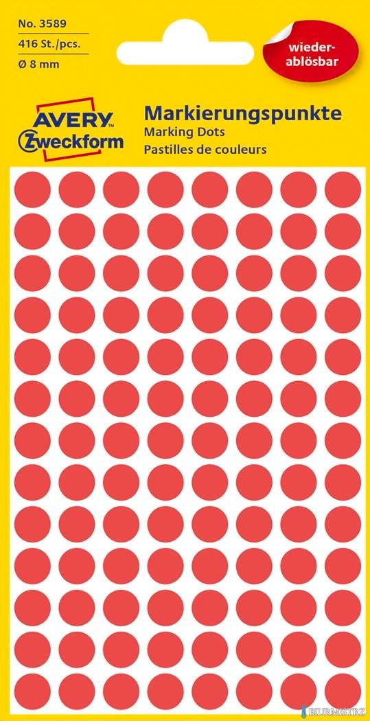 Usuwalne kółka do zaznaczania _8mm, 416szt./op. czerwone 3589 Avery Zweckform