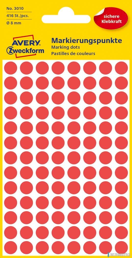 Kółka do zaznaczania kolorowe, 416 etyk./op., Q8 mm, czerwone Avery Zweckform, 3010
