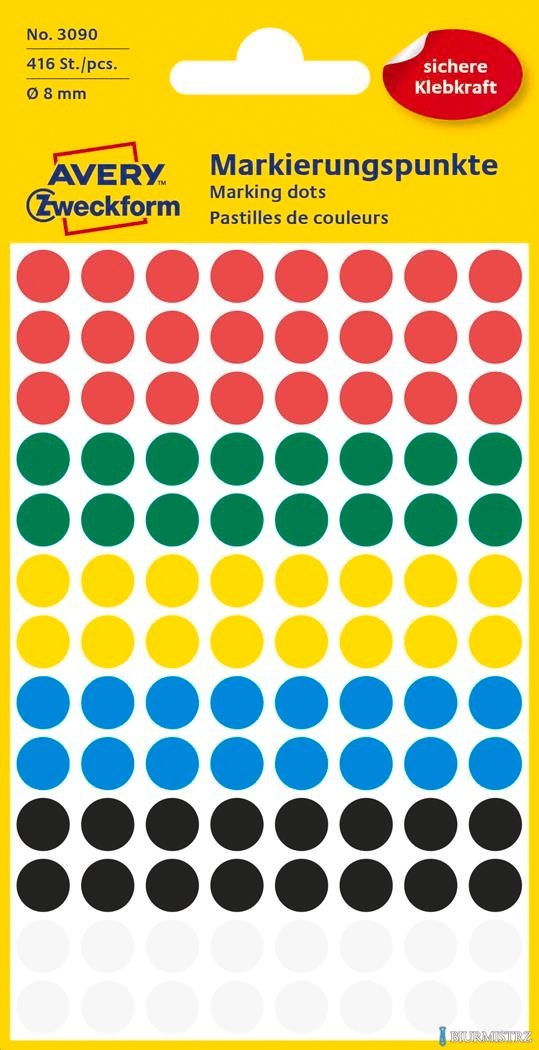 Kółka do zaznaczania mix kolorów 3090 Q8 4 ark Avery Zweckform