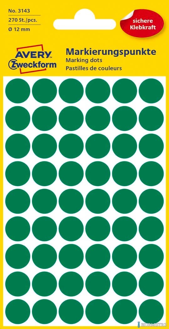 Kółka do zaznaczania zielone 3143 Q12 5 ark. Avery Zweckform