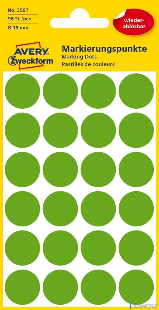 Usuwalne kółka do zaznaczania _18mm, 96szt./op. zielone 3596 Avery Zweckform