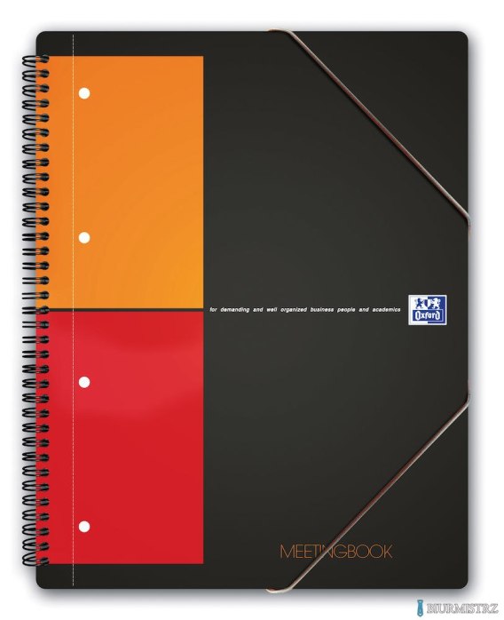 Kołonotatnik Oxford Meetingbook A4 kratka_- Papier 80 g/m2. Kołonotatnik posiada teczękę do przechowywania dokumentów. Oprawa polipropylenowa, 4 otwory do segregatora, mikroperforacja. Format A4+, 80 kartek.Liniatura: kratka._- jednostka sprzedaży 1 sztuka