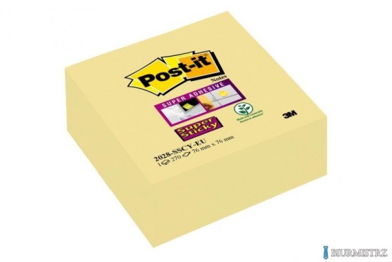 Kostka samoprzylepna POST-IT_ Super Sticky (2028-SSCY), 76x76mm, 270 kart., żółta