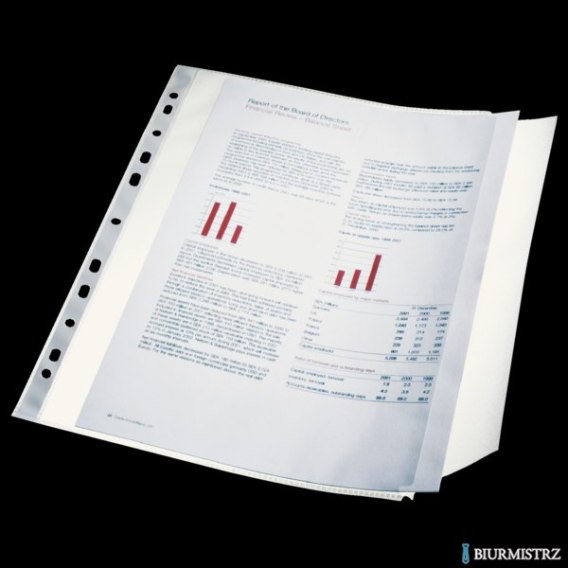 Koszulka A4 z klapką Esselte_- na dokumenty w formacie A4_- otwierana z boku, klapka zabezpiecza dokumenty przed wypadaniem_- multiperforowana - pasuje do każdego segregatora_- wykonana z folii PP o grubości 100 mic_- opakowanie: folia/10 sztuk_- jednostka sprzedaży 1 opakowanie