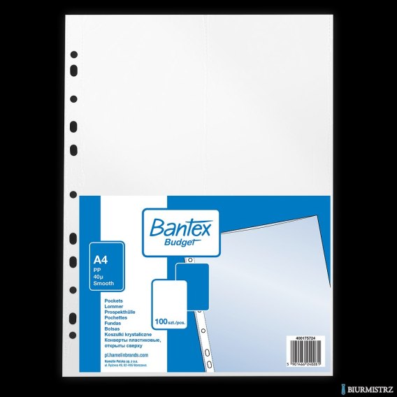 Koszulki krystaliczna A4 40mic., w folii BUDGET (100szt) BANTEX 400175724