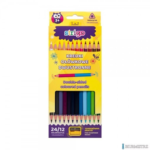 Kredki ołówkowe trójkątne dwukolorowe 12 szt. 24 kolory + temperówka SSC116