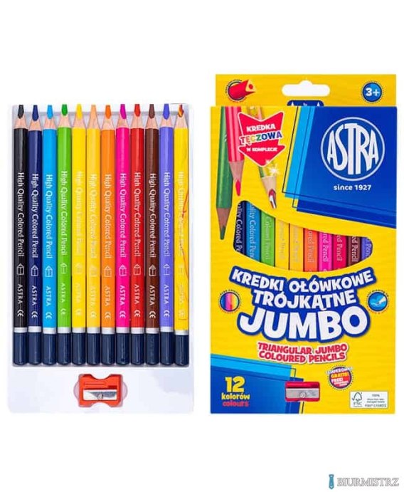 Kredki ołówkowe trójkątne jumbo ASTRA 12 kolorów z temperówką 312023911
