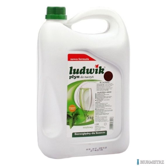 Miętowy płyn do mycia naczyń Ludwik_posiada on doskonałe właściwości myjące oraz wysoką zdolność do emulgowania tłuszczów_przy pomocy Ludwika można myć naczynia zarówno w ciepłej, jak i zimnej wodzie_płyn nie pozostawia zacieków na umytych powierzchniach oraz nadaje im połysk bez konieczności wycierania ich do sucha_Ludwik, poza swoim głównym zastosowaniem czyli myciem naczyń, często używany jest do mycia i czyszczenia wszelkiego typu powierzchni sprzętów domowego użytku: mebli, lodówek, wykładzin, podłóg, glazury, dywanów i tworzyw sztucznych_wydajny i bezpieczny dla środowiska płyn do mycia naczyń, który posiada Świadectwo Jakości Zdrowotnej Państwowego Zakładu Higieny_pojemność: 5l_oferta specjalna obowiązuje do wyczerpania zapasów
