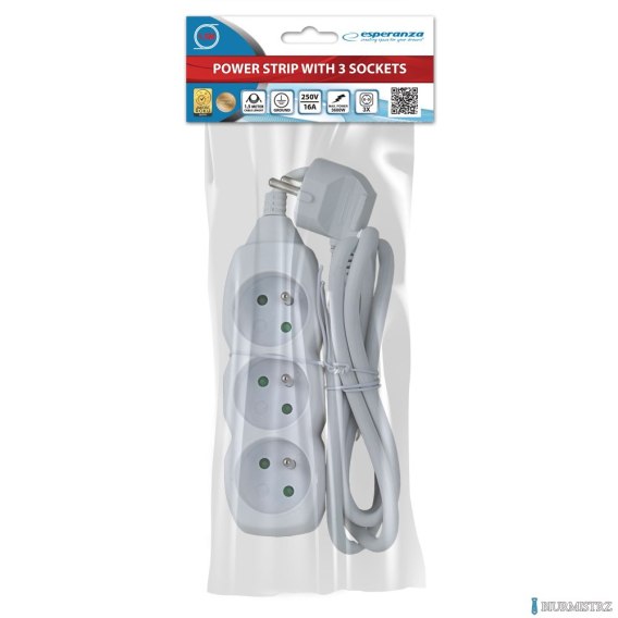 Listwa zasilająca przedłużacz 3 gniazda biała 1,5m ESPERANZA ELK203W