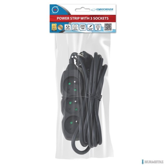 Listwa zasilająca przedłużacz 3 gniazda czarna 3m ESPERANZA ELK204K