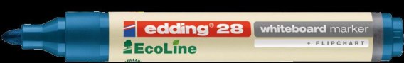 Ekologiczny marker do tablic suchościeralnych. Minimum 90% plastiku użytego do produkcji pochodzi z materiałów odnawialnych. Końcówka okrągła, szerokość linii pisania 1,5-3 mm. Może być czasowo pozostawiony bez zatyczki bez utraty właściwości piszących. Bez dodatku octanu butylu. Kolor niebieski.