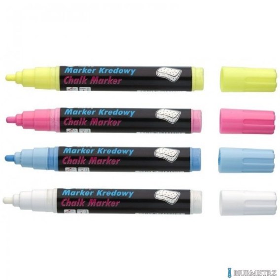 Markery kredowe TOMA 292, 291, 290__ markery z rozpuszczona kredą__ do pisania po tablicach czarnych, białych, po szkle i powierzchniach plastikowych__ zmywalne wodą np. tradycyjną gąbką, do użytku wewnątrz pomieszczeń__ nasączalne końcówki fibrowe: _292 - 4,5 mm; 291 - 5x8 mm; 290 - 8x15 mm__ bezwonny tusz pigmentowy, wolny od xylenu