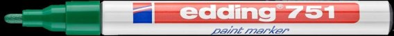 Marker lakierowy Edding 751_- marker lakierowy przeznaczony do wykonywania trwałych oznaczeń na niemal każdej powierzchni, także porowatej_- tusz pigmentowy, dobrze kryjący i wysoce nieprzezroczysty, wodoodporny i szybkoschnący, odporny na ścieranie, odporny na działanie temperatury do 400_C (kolory: biały, żółty i srebrny do 1000_C)_- tusz o nieagresywnym zapachu i kryciu zbliżonym do lakieru, nie zawiera toluenu i ksylenu_- marker posiada system kontroli dopływu tuszu do końcówki_- aluminiowa obudowa_- okrągła końcówka_- grubość linii pisania: 1-2 mm (751)_- jednostka sprzedaży 1 sztuka