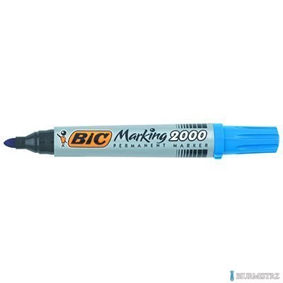 Marker permanentny Bic 2000/2300 _Marker z tuszem na bazie alkoholu, bezzapachowy. Polipropylenowa obudowa o średnicy 20mm i długości 13,8cm zawiera 5.4 g atramentu. Bez skuwki, nie wysycha przez 3 tygodnie. Zablokowana końcówka nie ugina się i nie cofa pod naciskiem. Długść linii pisania dla końcówki okrągłej 1400m, dla ściętej 1100 m._Marker BIC 2000 z okrągłą akrylową końcówką _ średnica 5.5 mm, grubość linii pisania 1.7 mm. Marker BIC 2300 ze ściętą akrylową końcówką _ grubość linii pisania 3.1 _ 5.3 mm. Produkt nie zawiera PVC. Oznaczenie producenta oraz kraju pochodzenia na korpusie