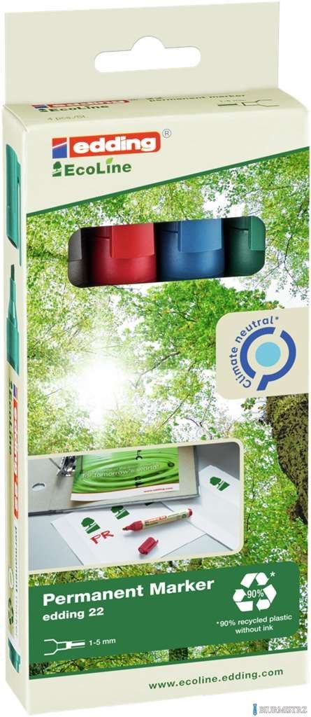 Markery EDDING permanentne ekologiczne 4 kol. etui ścięta końcówka 22/4s ed