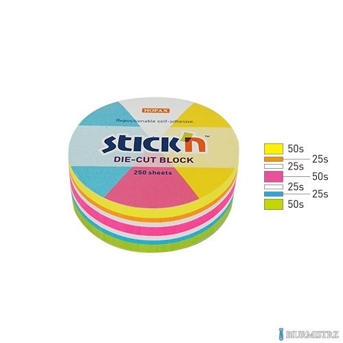 Notes koło, 67x67mm, mix 5 kol. neon+biały, 250kart. Stickn 21830