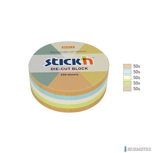 Notes koło, 67x67mm, mix 5 kol. pastel+recykling 250kart. Stickn 21831