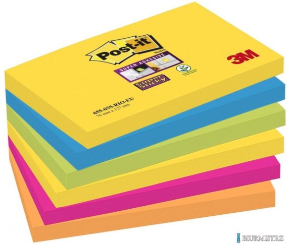 Nowy indeks blk0041011 Bloczek samoprzylepny POST-IT Super sticky (655-6SS-RIO), 127x76mm, 6x90 kart., paleta Rio de Janeiro