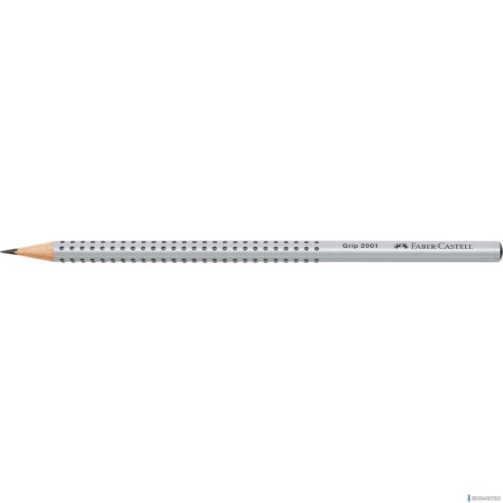 Ołówek grafitowy Grip 2001 Faber-Castell w kolorze srebrnym. Nawet w czasach zdominowanych przez komputery, telefony i internet, ołówek wciąż pozostaje nieodłącznym towarzyszem codzienności. To doskonałe w swojej prostocie narzędzie. Ergonomiczny trójkątny kształt i charakterystyczna dla tej serii opatentowana strefa Grip z małymi, antypoślizgowymi punktami zapewniają wysoki komfort użytkowania i niemęczące, wygodne pisanie i szkicowanie. Odpowiedni również dla leworęcznych. Z odpornym na pękanie grafitem o stopniu twardości 2B, dzięki bezpiecznemu procesowi wiązania (SV). Wykonany z certyfikowanego drewna pochodzącego ze zrównoważonego i odpowiedzialnie zarządzanego leśnictwa. Powierzchnia pokryta lakierem na bazie wody _ bezpiecznym dla środowiska i zdrowia dzieci. Produkcja neutralna pod względem emisji dwutlenku węgla.