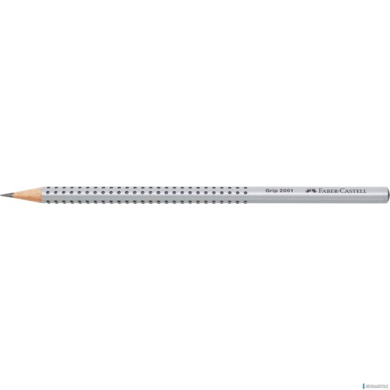Ołówek grafitowy Grip 2001 Faber-Castell w kolorze srebrnym. Nawet w czasach zdominowanych przez komputery, telefony i internet, ołówek wciąż pozostaje nieodłącznym towarzyszem codzienności. To doskonałe w swojej prostocie narzędzie. Ergonomiczny trójkątny kształt i charakterystyczna dla tej serii opatentowana strefa Grip z małymi, antypoślizgowymi punktami zapewniają wysoki komfort użytkowania i niemęczące, wygodne pisanie i szkicowanie. Odpowiedni również dla leworęcznych. Z odpornym na pękanie grafitem o stopniu twardości H, dzięki bezpiecznemu procesowi wiązania (SV). Wykonany z certyfikowanego drewna pochodzącego ze zrównoważonego i odpowiedzialnie zarządzanego leśnictwa. Powierzchnia pokryta lakierem na bazie wody _ bezpiecznym dla środowiska i zdrowia dzieci. Produkcja neutralna pod względem emisji dwutlenku węgla.